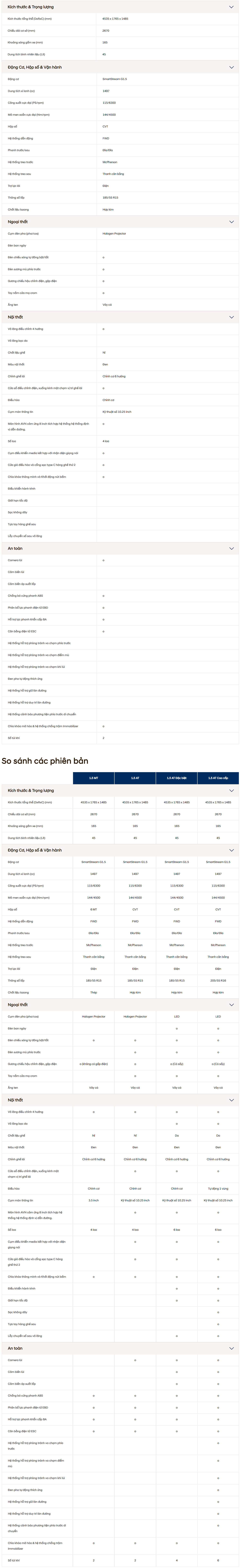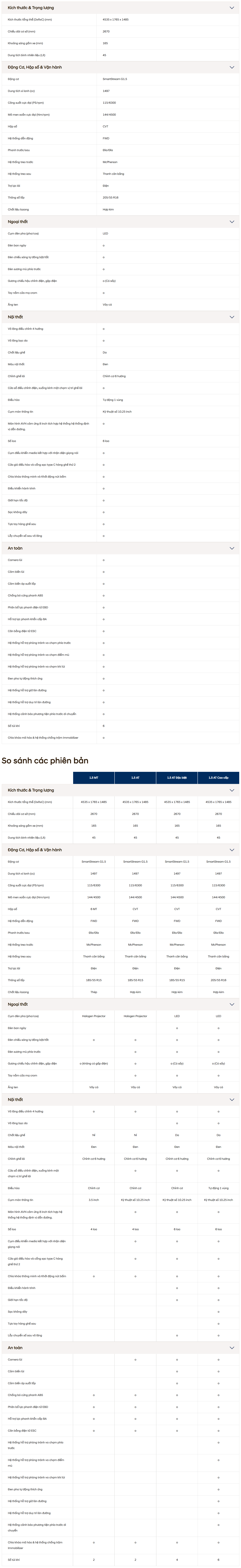 Tổng quan | Cảm nhận 360° | Đánh giá | Giá bán | Ngoại thất | Nội thất | Vận hành | An toàn | Tiện nghi | Thông số