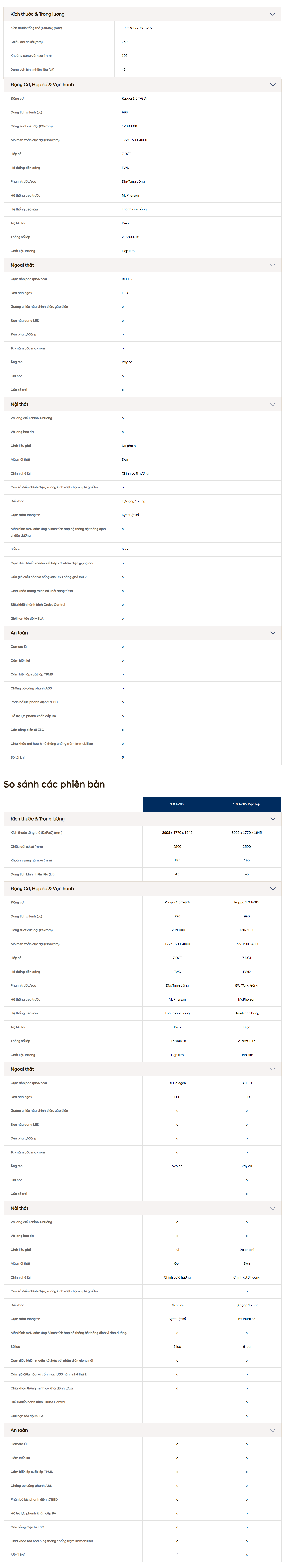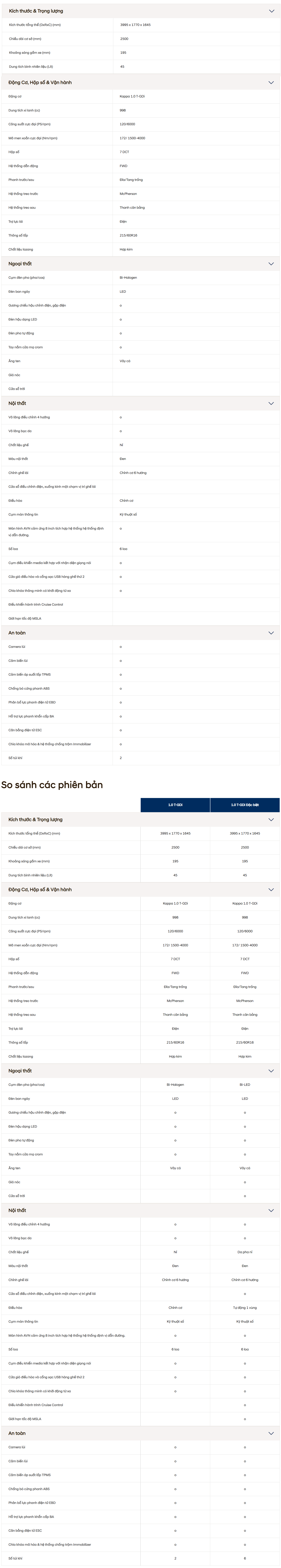 Tổng quan | Cảm nhận 360° | Models | Tính năng nổi bật | Ngoại thất | Nội thất | Vận hành | An toàn | Tiện nghi | Thông số